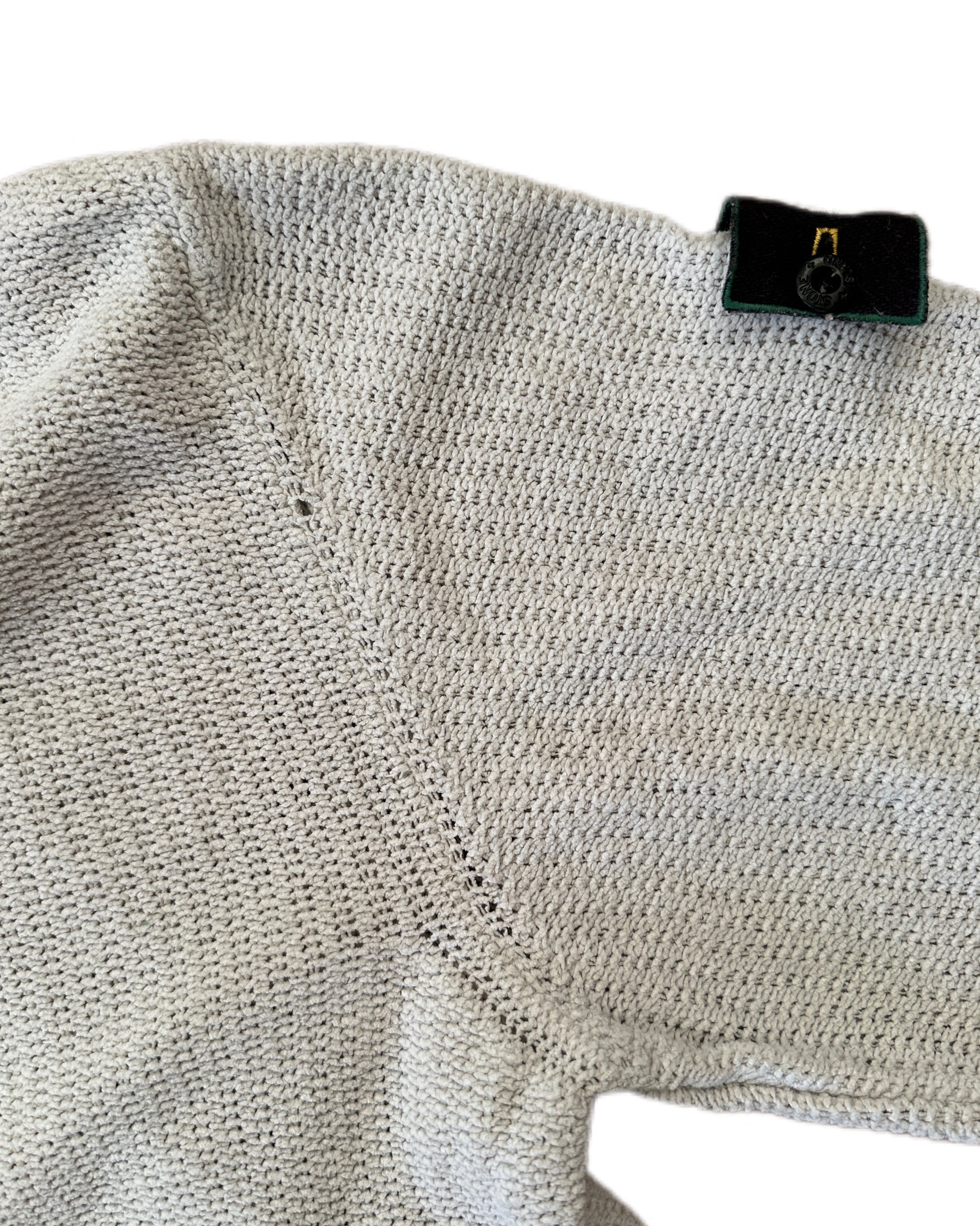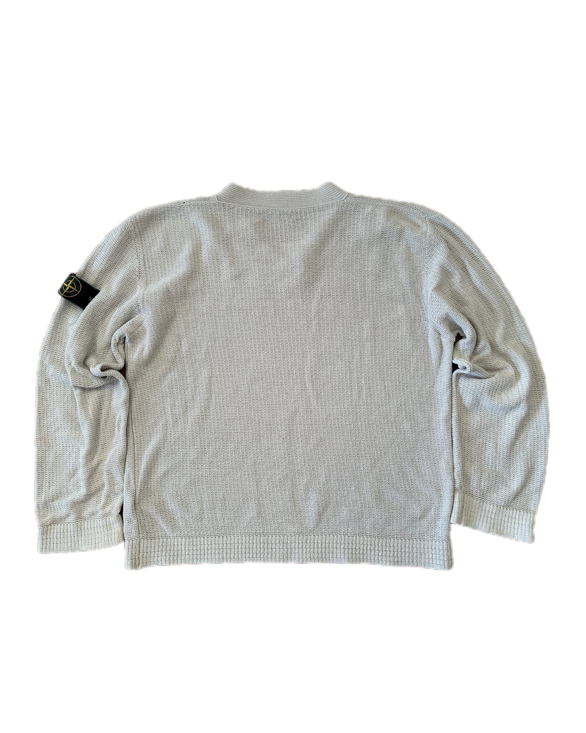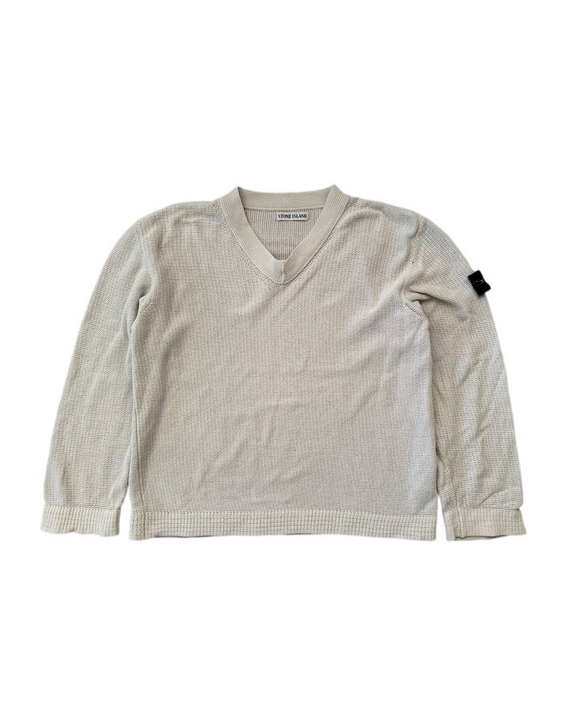 Stone Island 1999 Vintage Green Edge Light Grey Cotton V-Neck Knit Sweater - XL - Made in Italy