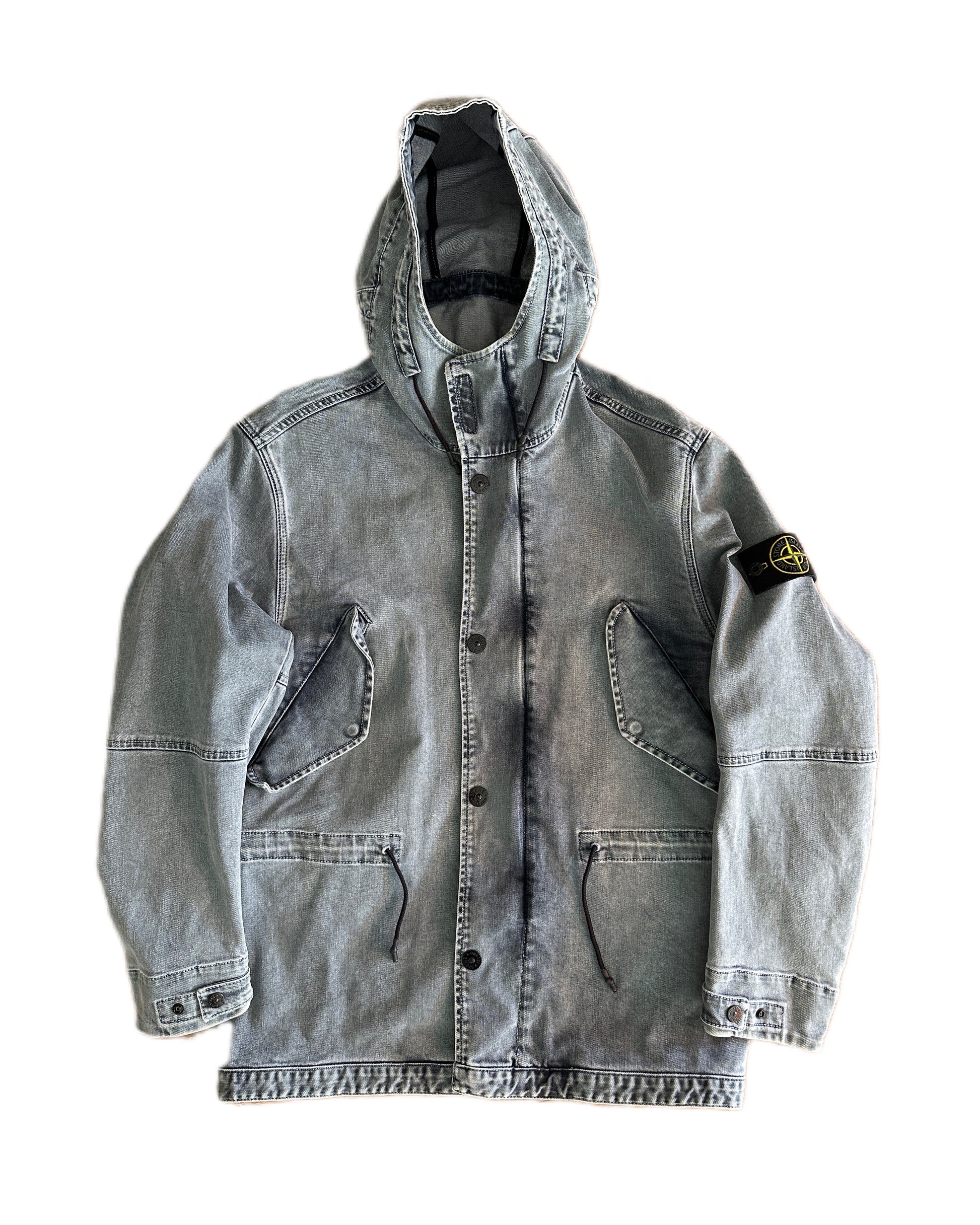 Stone Island 2018 Foam Resin Treated Denim Parka Jacket - M